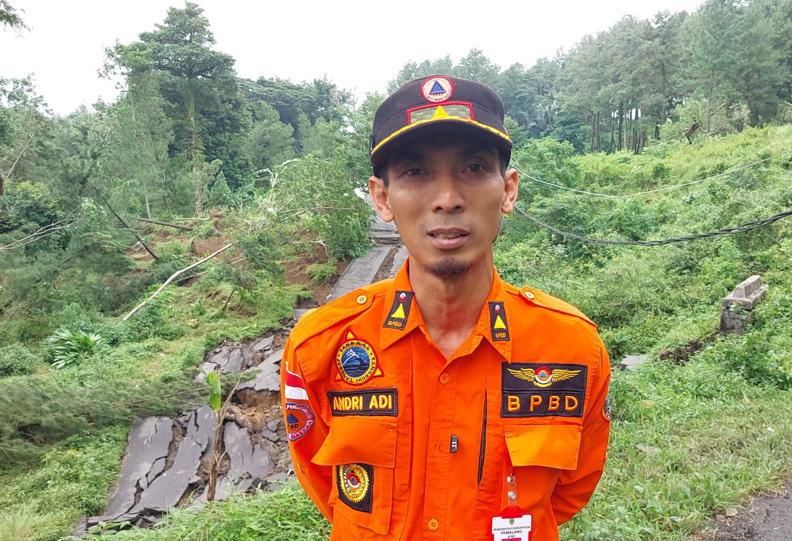 PUSKAPIK.COM, Pemalang - Kepala Badan Penanggulangan Bencana Daerah (BPBD) Pemalang, Andri Adi, mengimbau warga masyarakat untuk tak mendekati area longsor di Jalan Raya Semingkir Wisnu.