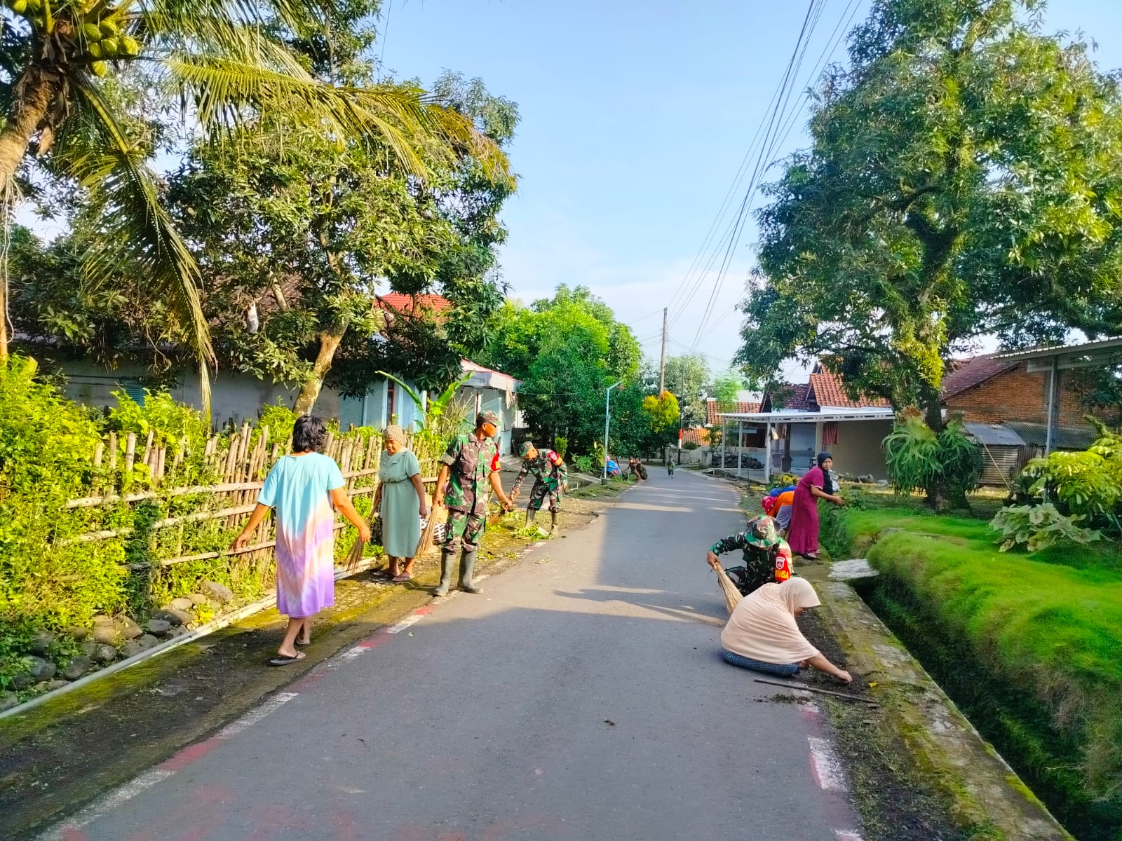 Babinsa di Kalisaleh Pemalang Bersihkan Lingkungan Bareng Emak-emak