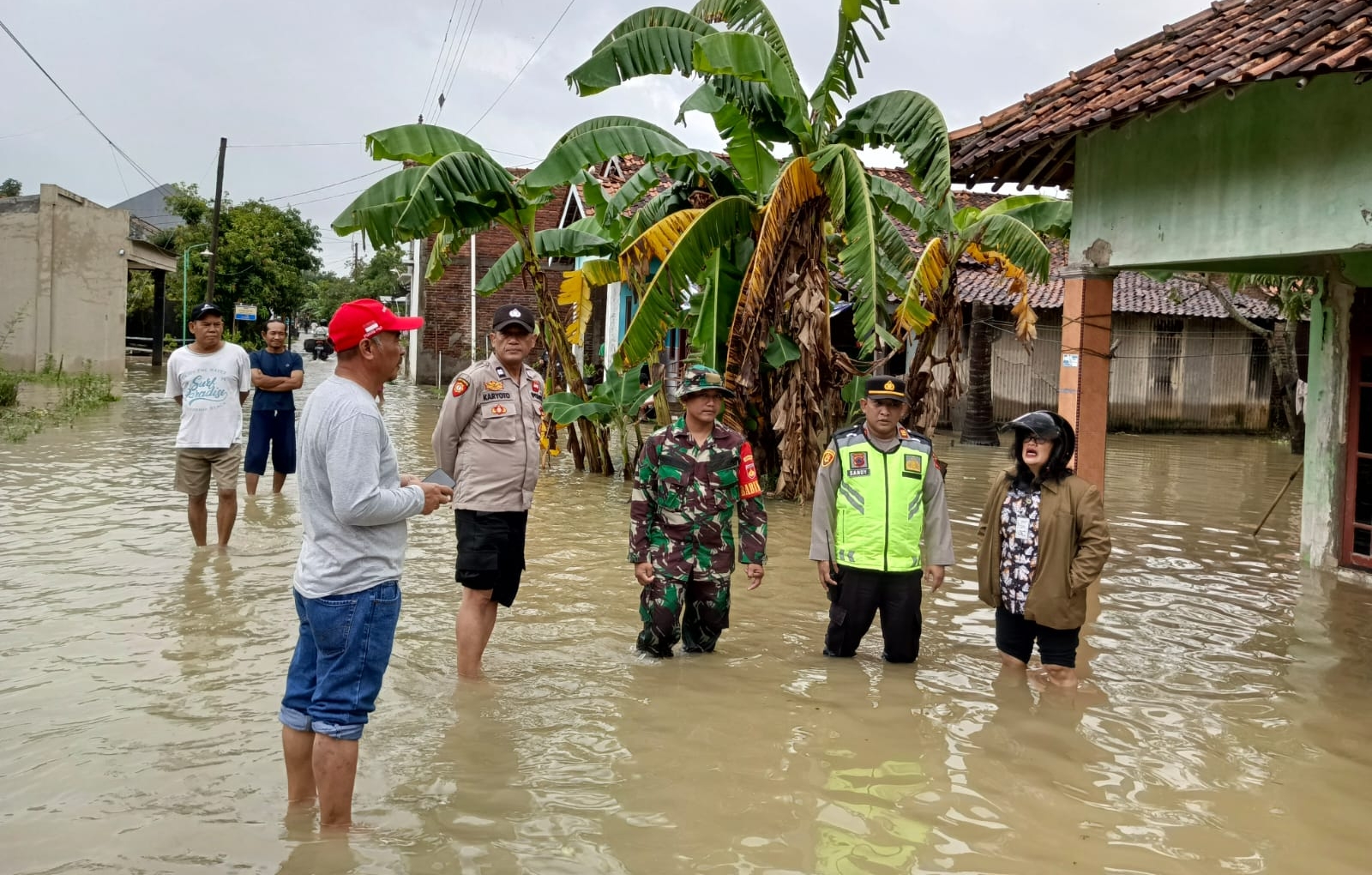 Cek Lokasi yang Terendam Banjir, Kapolsek Sragi Bantu Warganya