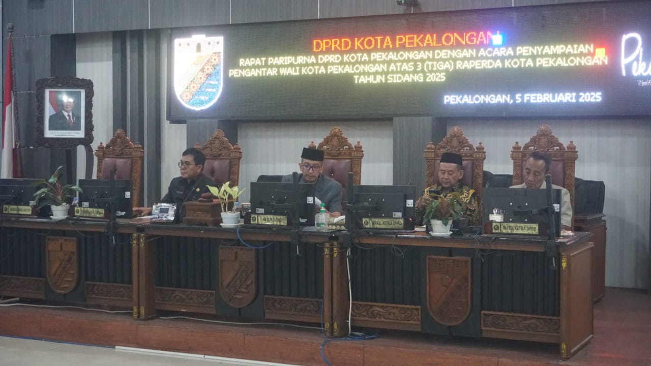 PUSKAPIK.COM, Pekalongan - Dewan Perwakilan Rakyat Daerah (DPRD) Kota Pekalongan menyelenggarakan Rapat Paripurna dengan acara Penyampaian Pengantar Walikota Pekalongan Atas Tiga (3) Rancangan Peraturan Daerah (Raperda) Kota Pekalongan Tahun Sidang 2025 yang dipimpin langsung oleh Ketua DPRD Kota Pekalongan, M. Azmi Basyir dan turut dihadiri oleh jajaran DPRD dan OPD terkait, serta perwakilan Forkopimda Kota Pekalongan, berlangsung di Ruang Sidang Paripurna DPRD setempat, Rabu (5/2/2025).