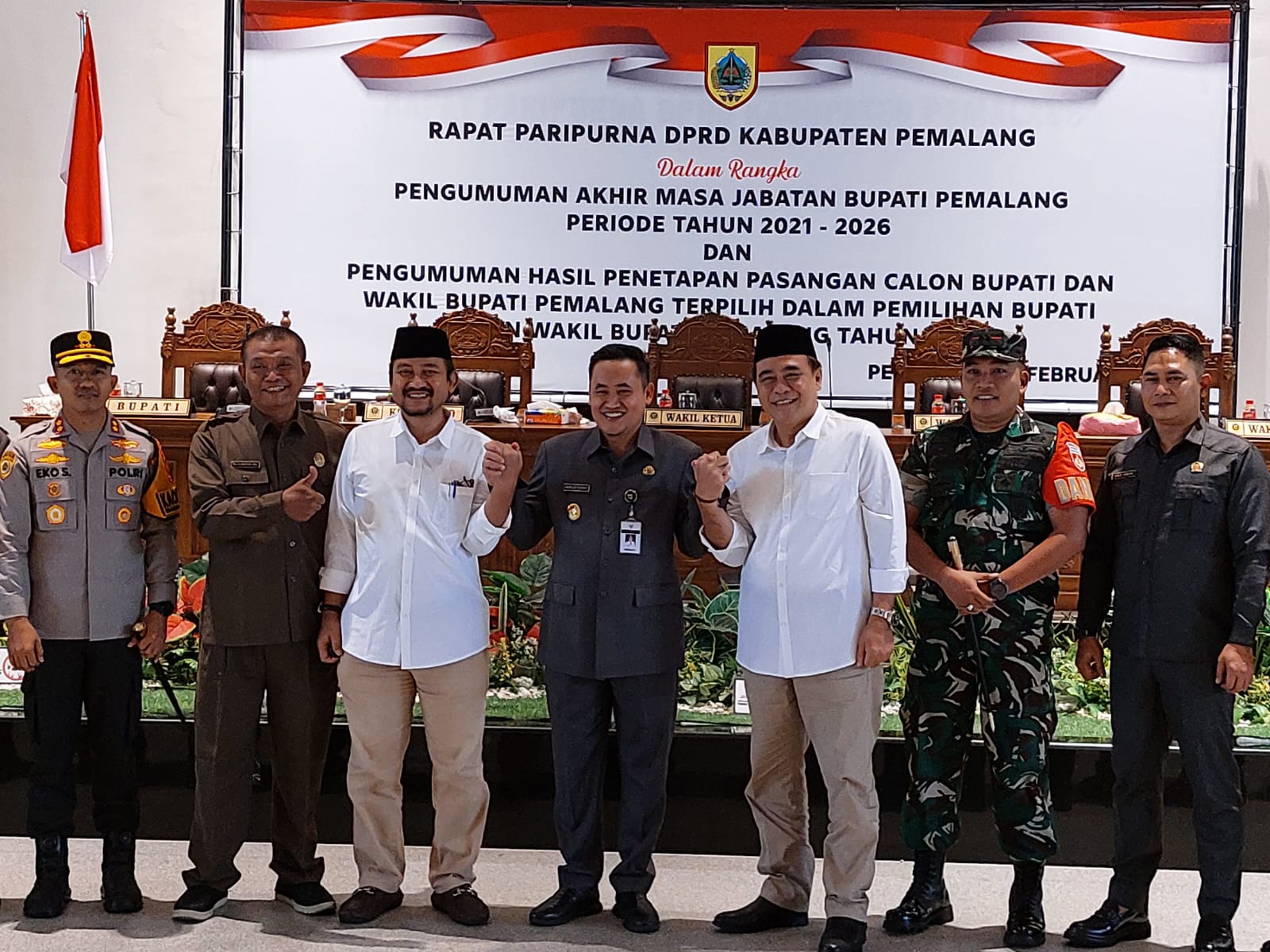 Dalam rapat paripurna itu, DPRD Pemalang juga mengumumkan masa jabatan Bupati Pemalang periode 2021 - 2026, Mansur Hidayat, berakhir terhitung sejak pasangan calon Bupati dan Wakil Bupati Pemalang terpilih nantinya dilantik.
