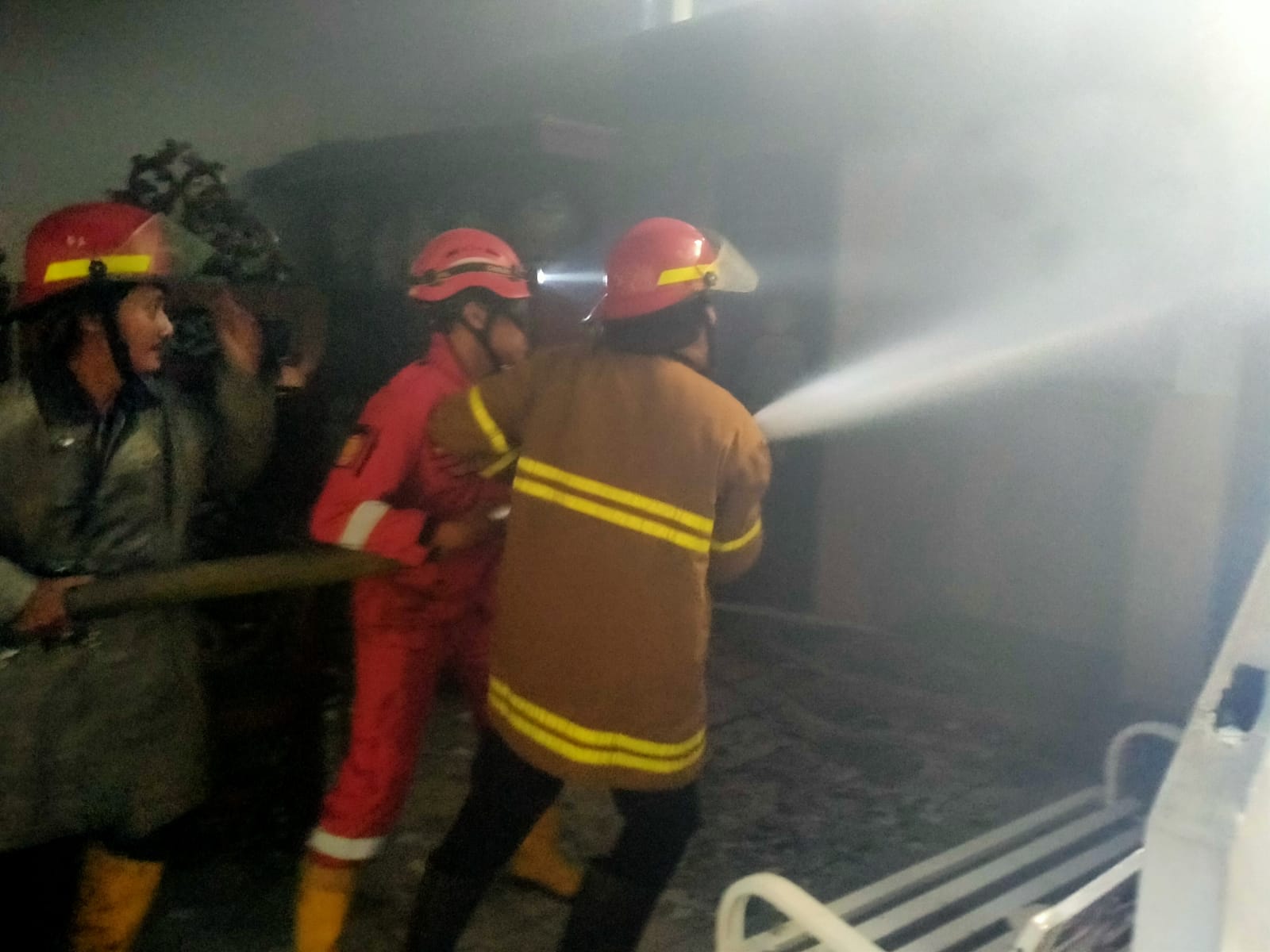 Tak berselang lama, petugas Pemadam Kebakaran Kabupaten Pemalang datang di lokasi. Para petugas langsung berjibaku memadamkan api kebakaran yang melahap ruang dapur restoran.