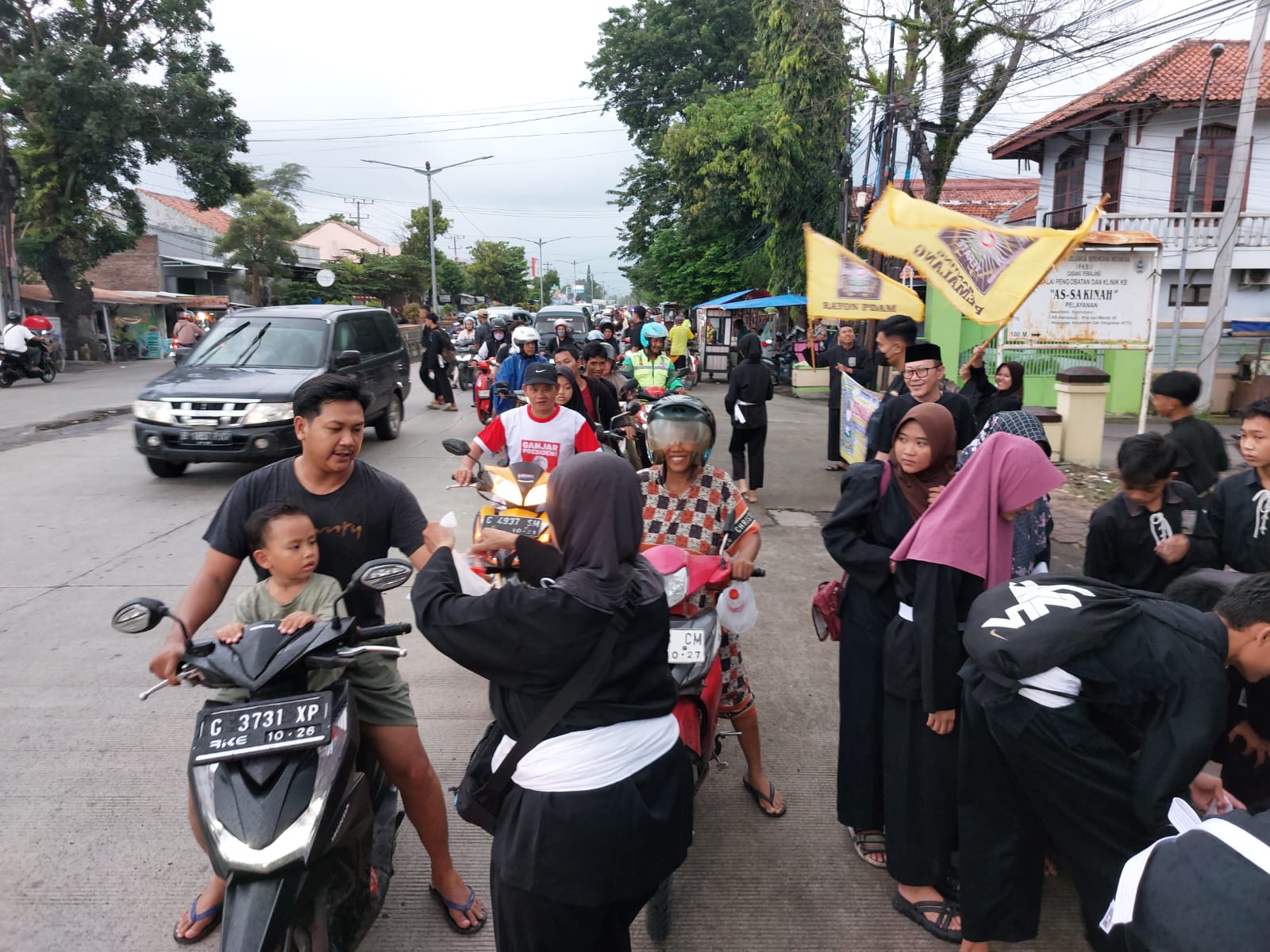 Warga yang sedang ngabuburit serta tukang becak, sopir angkot, dan ojek online pun sontak berdatangan ikut mengantre untuk mendapat takjil pelengkap berbuka puasa.