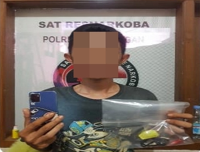 Dari penangkapan yang dilakukan petugas menyita 1 paket narkotika jenis sabu yang terbungkus plastik klip seberat 0,24 gram.