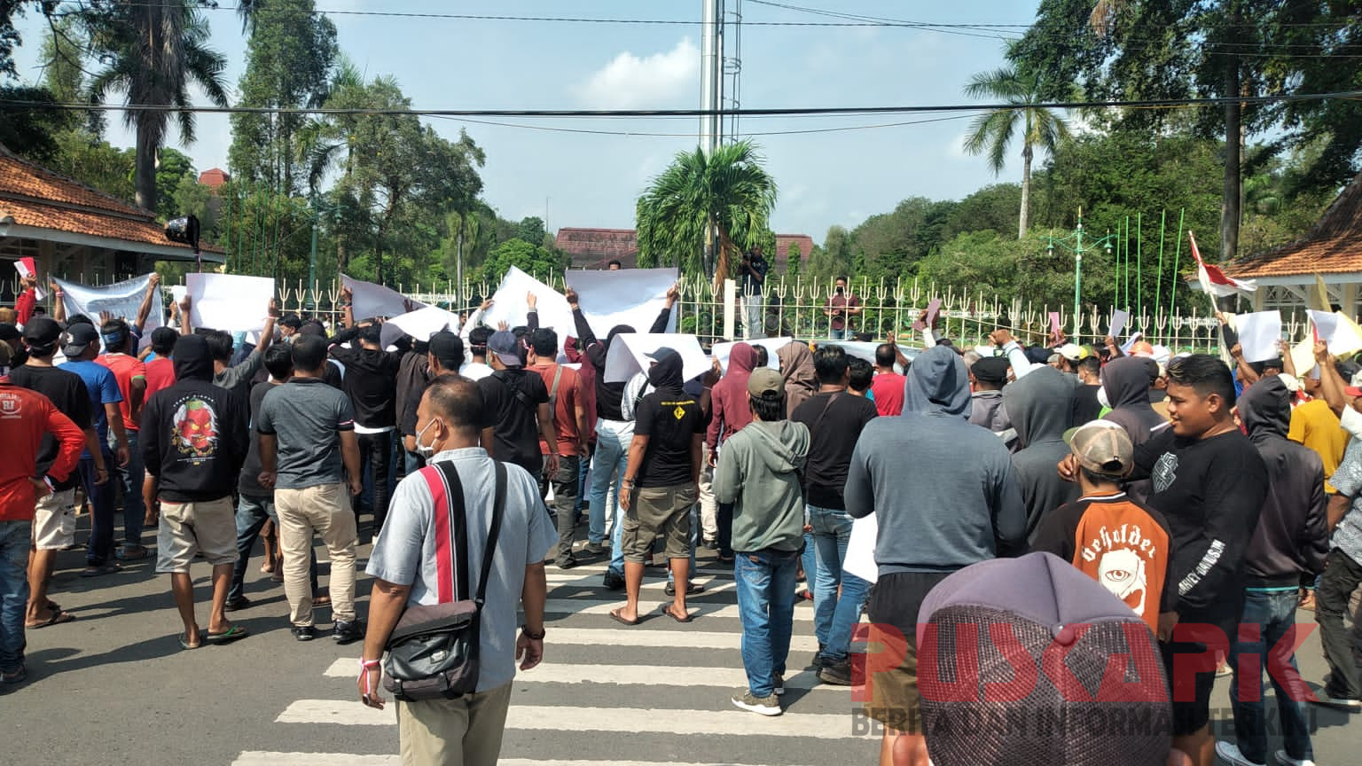 PUSKAPIK.COM, Tegal – Ratusan pemborong konstruksi yang tergabung dalam Pemborong Kabupaten Tegal Bersatu menggeruduk Kantor Bupati Tegal, Senin 20 Juni 2022.